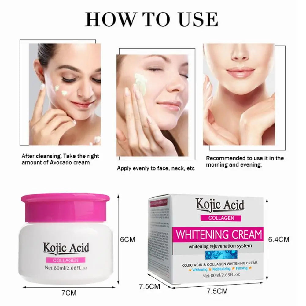 Collagen Kojic Acid Cream Facial Serum Moisturizing Nourish Damaged Bright Cream For Skin Care Repair Kojic Acid Face Cream 80ml