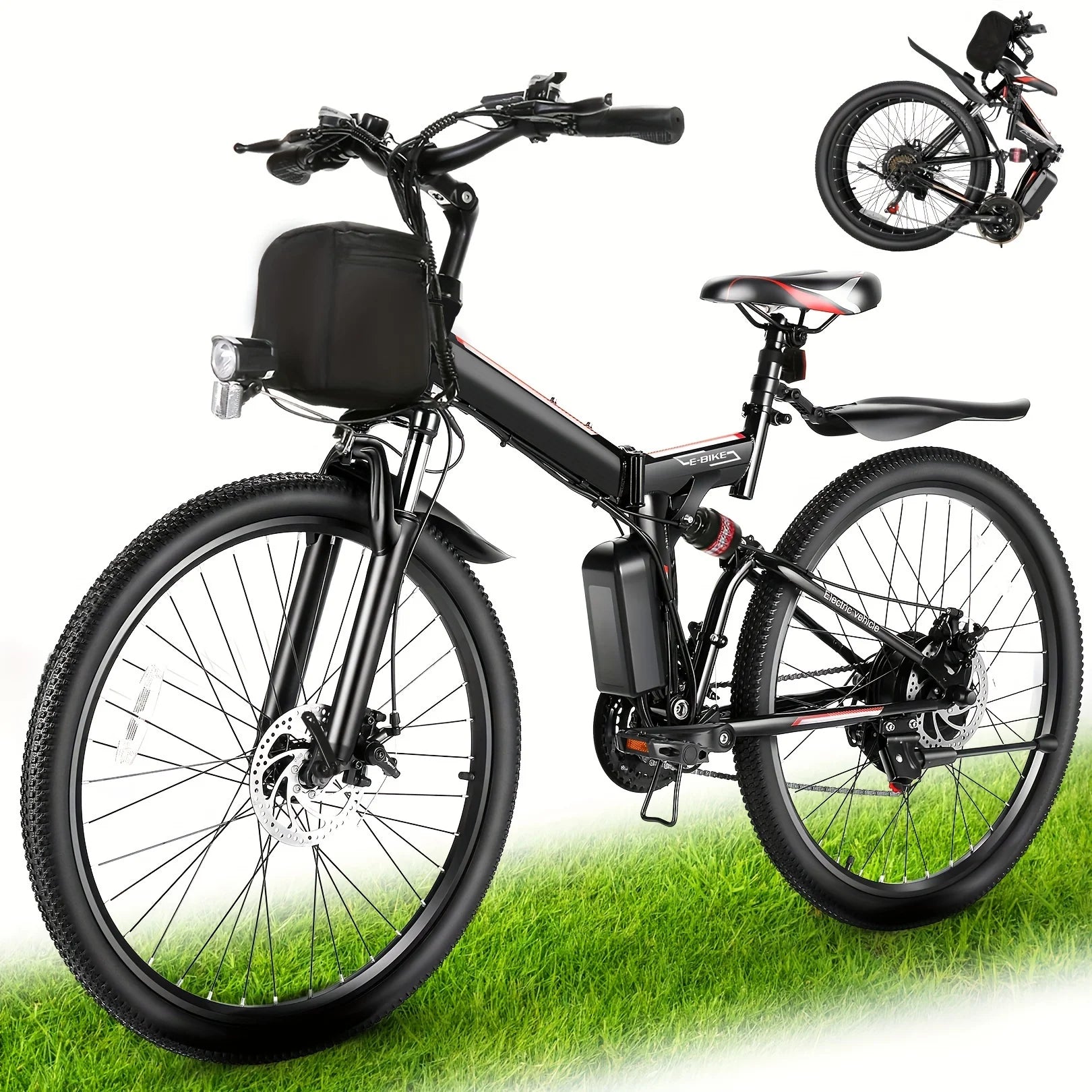 Vivi M026TGB 26" Folding Electric Bike for Adults, with 500W Motor,48V 20MPH Removable Battery, Up to 50Miles Range